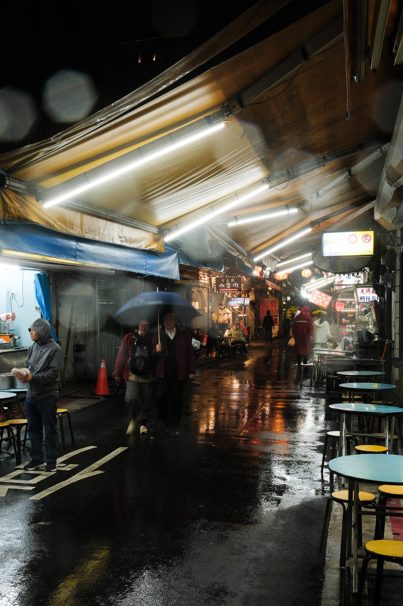 Raohe St Night Market on a rainy night