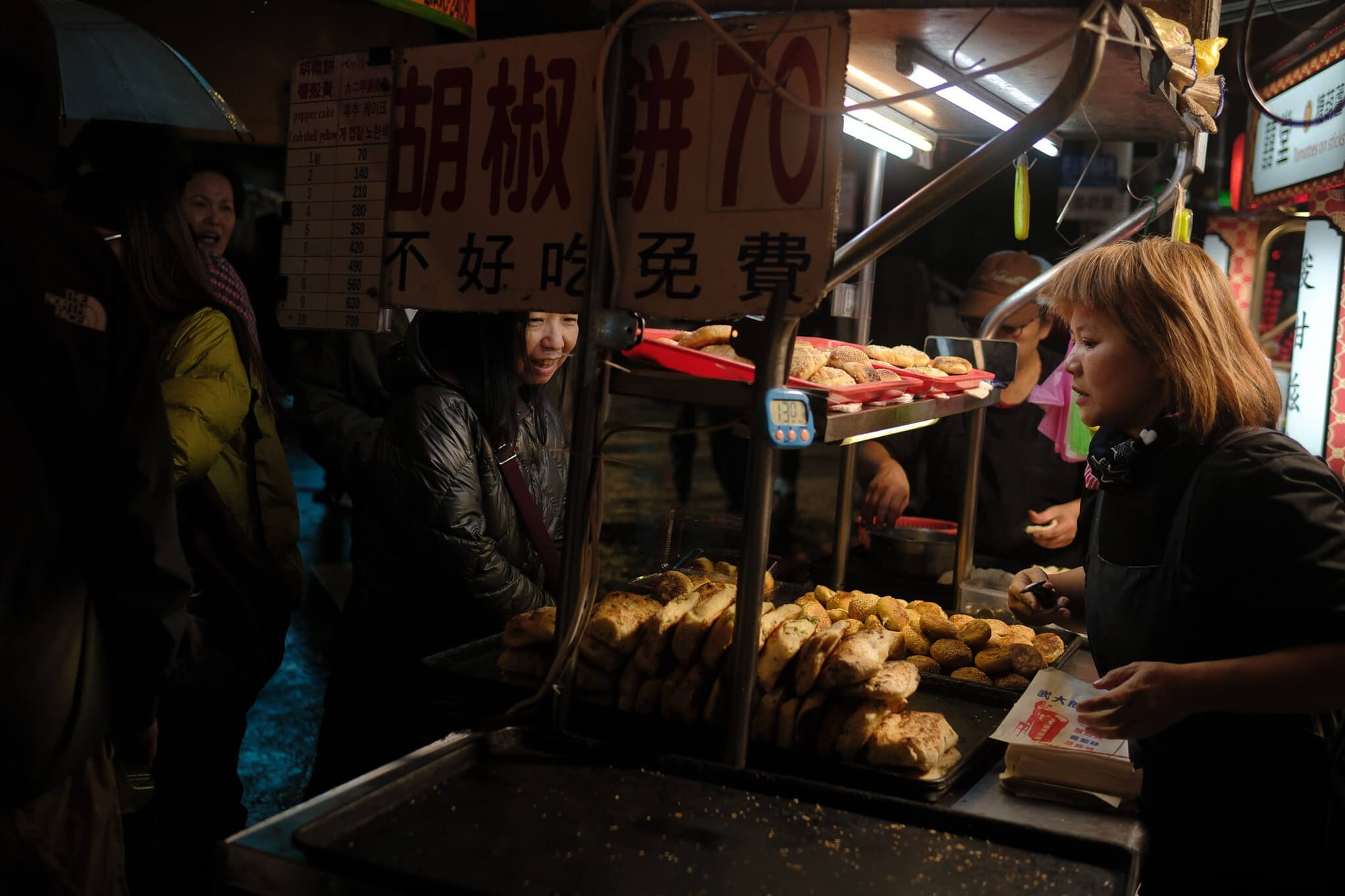 We only visited one night market for one food item, Fuzhou Ancestral Black Pepper Bun 福州世祖胡椒餅 for 60NTD (AUD$3)! Then we snacked our way down the colourful food stalls.