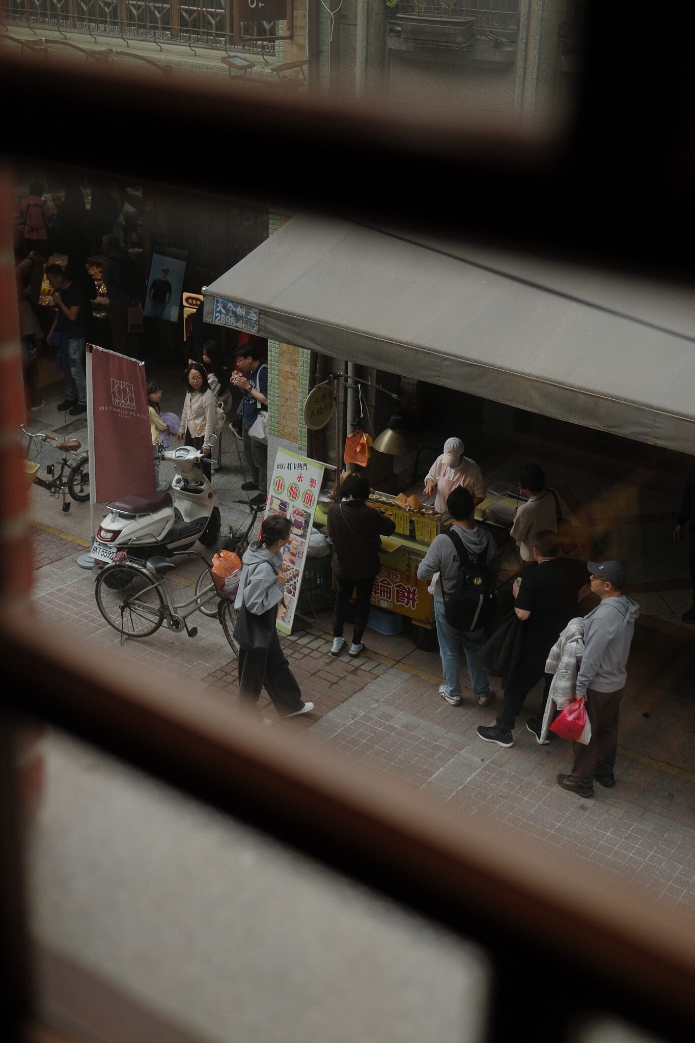 From top left, clockwise: Wolf Tea, pancakes with red bean and sweet potato filling, heritage architectural details, the view of Dihua St from Kuo’s Astral Bookshop